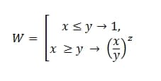 W = E СЛИ (x<=y,1,(x/y)^z)